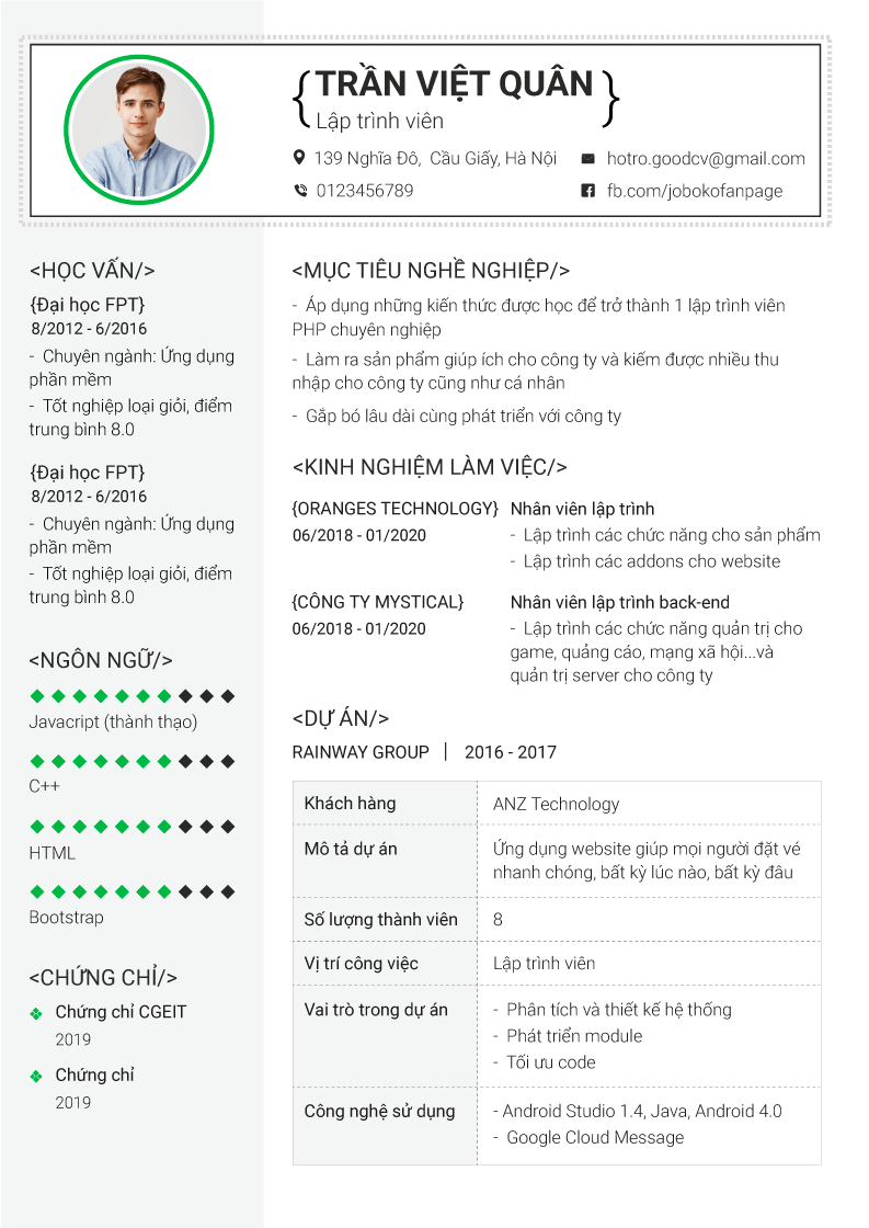 1. Cách viết thông tin cá nhân cho CV xin việc IT mới ra trường