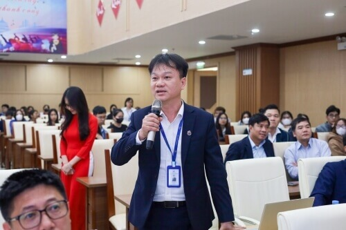 Ông Nguyễn Thạc Tâm - Phó tổng GĐ Ngân hàng hợp tác xã Việt Nam báo cáo tham luận "Chuyển đổi số: Thời cơ, thách thức và chiến lược của ngân hàng hợp tác xã Việt Nam"