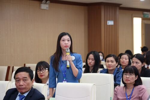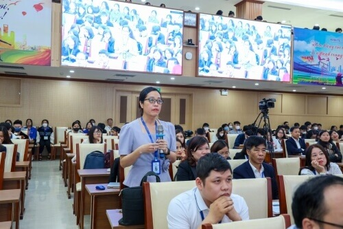 Các đại biểu, khách mời, cán bộ, giảng viên và sinh viên Uneti trao đổi các nội dung tại buổi hội thảo