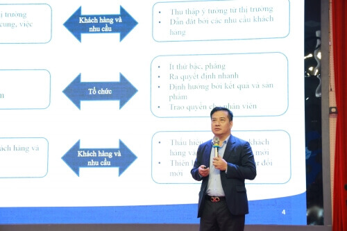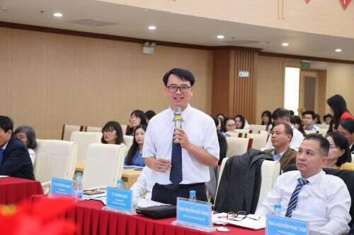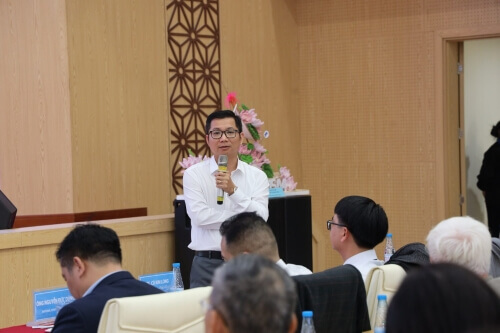 Chuyên gia Nguyễn Đức Dũng báo cáo tham luận về nội dung chuyển đổi số tại Việt Nam với các vấn đề chi phí, chính sách, luật và học tập suốt đời