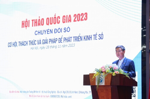 Trong bối cảnh của cuộc cách mạng công nghiệp lần thứ tư, chuyển đổi số đang trở thành một trong những yếu tố quan trọng để đảm bảo sự phát triển bền vững của nền kinh tế, đặc biệt là quá trình phát triển kinh tế số. Với tầm nhìn đưa Việt Nam trở thành quốc gia số với nền kinh tế số hàng đầu khu vực, việc nhận diện rõ những lợi thế và thách thức khi thực hiện chuyển đổi số để phát triển kinh tế số song song với cơ hội việc làm mới là vô cùng cần thiết. Sáng ngày 28/11/2023 tại cơ sở 218 Lĩnh Nam, Hoàng Mai, Hà Nội, trường Đại học Kinh tế - Kỹ thuật Công nghiệp phối hợp cùng trường Đại học Kinh tế Quốc dân đồng tổ chức hội thảo Khoa học Quốc gia với chủ đề "Chuyển đổi số: Cơ hội, thách thức và giải pháp để phát triển kinh tế số" với mục tiêu nhằm tạo ra một diễn đàn để các nhà hoạch định chính sách, các nhà quản trị doanh nghiệp, các nhà nghiên cứu cùng các giảng viên và nghiên cứu sinh trao đổi, chia sẻ kinh nghiệm về các vấn đề liên quan đến chuyển đổi số.